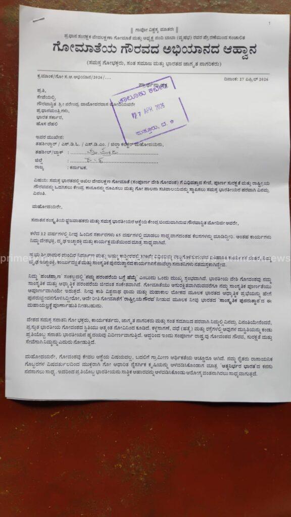 ಪುತ್ತೂರು: ರಾಷ್ಟ್ರಮಟ್ಟದಲ್ಲಿ ಗೋಹತ್ಯೆ ನಿಷೇಧ ಕಾಯ್ದೆಯನ್ನು ಜಾರಿಗೆ ತರಬೇಕು ಎಂದು ಆಗ್ರಹಿಸಿ ರಾಷ್ಟಪತಿ, ರಾಜ್ಯಪಾಲರು ಹಾಗೂ ಮುಖ್ಯಮಂತ್ರಿಗಳಿಗೆ ಮನವಿಯನ್ನು ಪುತ್ತೂರು ತಹಶೀಲ್ದಾರರ ಮುಖಾಂತರ ಸಲ್ಲಿಸಲಾಯಿತು.