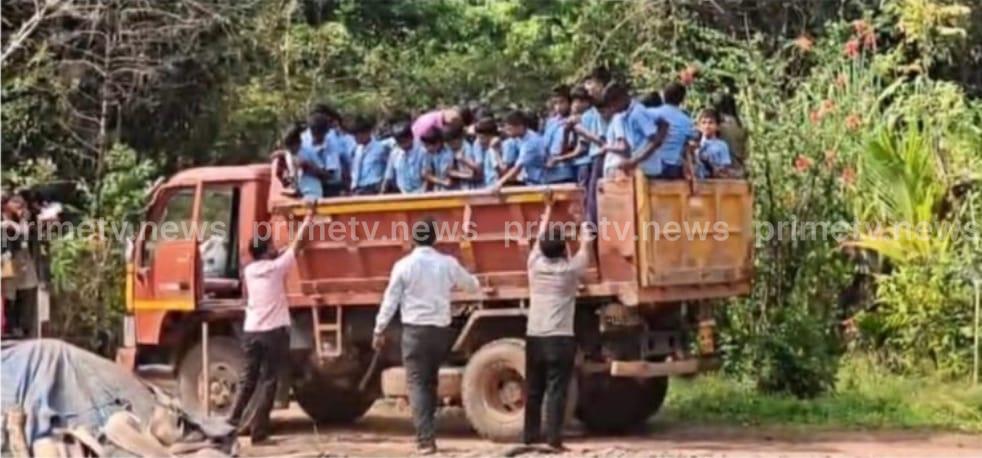 ಬೆಳ್ತಂಗಡಿ: ತಾಲೂಕಿನ ಬಳಂಜಾ ಗ್ರಾಮದ ಪರಾರಿ ಪ್ರದೇಶದಲ್ಲಿ ಸಾರ್ವಜನಿಕ ರಸ್ತೆಯಲ್ಲಿ ಶಾಲಾ ಮಕ್ಕಳನ್ನು ಅಪಾಯಕಾರಿ ರೀತಿಯಲ್ಲಿ ಸಾಗಿಸಿದ ಘಟನೆ ಬೆಳಕಿಗೆ ಬಂದಿದೆ.