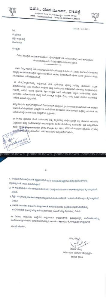 ಮಂಗಳೂರು: ನವೆಂಬರ್ 11, 2025ರಂದು ಮಂಗಳೂರಿನ ಅಡ್ಯಾರ್ ಸಹ್ಯಾದ್ರಿ ಕಾಲೇಜಿನಲ್ಲಿ ಕಾಂಗ್ರೆಸ್ ಪಕ್ಷದ ಕಾರ್ಯಕರ್ತರು ಕಾಲೇಜು ಆವರಣದೊಳಗೆ “ಮತದಾನದ ಕಳವು ಸಹಿ ಅಭಿಯಾನ” ನಡೆಸಿದ್ದಾರೆ ಎಂಬ ಆರೋಪ ಕೇಳಿಬಂದಿದೆ. ವಿದ್ಯಾರ್ಥಿಗಳಿಗೆ ತಪ್ಪು ಮಾಹಿತಿ ನೀಡಿ, ರಾಜಕೀಯ ಉದ್ದೇಶಕ್ಕಾಗಿ ಅವರನ್ನು ದಾರಿ ತಪ್ಪಿಸುವ ಪ್ರಯತ್ನ ನಡೆದಿದೆ ಎಂಬುದು ಗಮನಕ್ಕೆ ಬಂದಿದೆ.