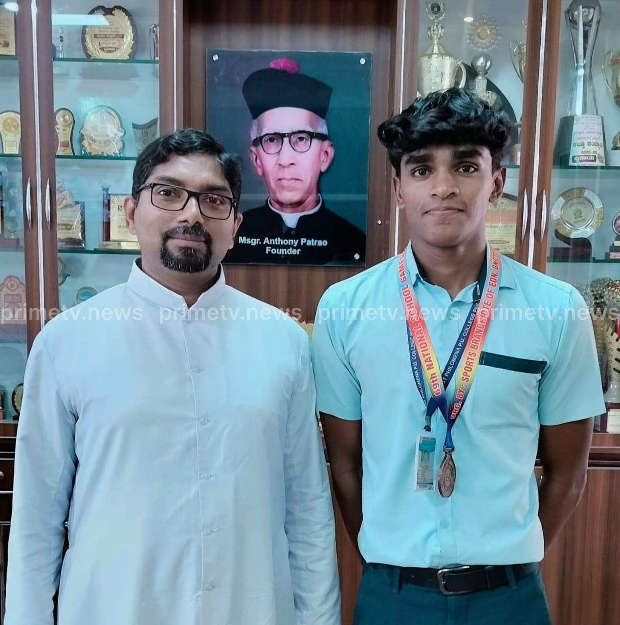 ನ 30 ರಿಂದ ಡಿ 5 ರವರೆಗೆ ನಡೆದ 69ನೇ ನ್ಯಾಷನಲ್ ಸ್ಕೂಲ್ ಗೇಮ್ಸ್ 2025 – 26 ಈಜು ಸ್ಪರ್ಧೆಯಲ್ಲಿ ಪುತ್ತೂರಿನ ಸಂತ ಫಿಲೋಮಿನಾ ಪದವಿ ಪೂರ್ವ ಕಾಲೇಜಿನ ದ್ವಿತೀಯ ವಿಜ್ಞಾನ ವಿಭಾಗದ ದಿಗಂತ್ ವಿ ಎಸ್ 100ಮೀ ಬ್ಯಾಕ್ ಸ್ಟ್ರೋಕ್ ವಿಭಾಗದಲ್ಲಿ ಕಂಚಿನ ಪದಕವನ್ನು ಪಡೆದುಕೊಂಡಿರುತ್ತಾರೆ.