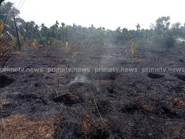ಪುತ್ತೂರು: ವಿದ್ಯುತ್ ತಂತಿ ತುಂಡಾಗಿ ಬಿದ್ದು ಸಂಭವಿಸಿದ ಬೆಂಕಿ ಅವಘಡದಲ್ಲಿ 3 ಎಕರೆಯಲ್ಲಿದ್ದ ಅಡಿಕೆ ಸಸಿಗಳು ಮತ್ತು ಗೇರು ಮರಗಳು ಸಂಪೂರ್ಣವಾಗಿ ಬೆಂಕಿಹಾಗುತಿಯಾದ ಘಟನೆ ಪುತ್ತೂರು ತಾಲ್ಲೂಕಿನ ಕುರಿಯ ಗ್ರಾಮದ ಬೂಡಿಯಾರ್ ಎಂಬಲ್ಲಿ ಮಂಗಳವಾರ ಮಧ್ಯಾಹ್ನ ನಡೆದಿದೆ.