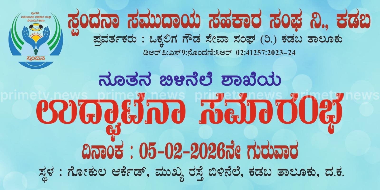 ಕಡಬ : ಕಡಬ ಸ್ಪಂದನ ಸಮುದಾಯ ಸಹಕಾರ ಸಂಘದ ಬಿಳಿನೆಲೆ ಶಾಖೆಯು ಬಿಳಿನೆಲೆ ಗೋಕುಲ ಆರ್ಕೆಡ್‌ನಲ್ಲಿ ಇಂದು (ಫೆ.5) ಶುಭಾರಂಭಗೊಂಡಿತು.
