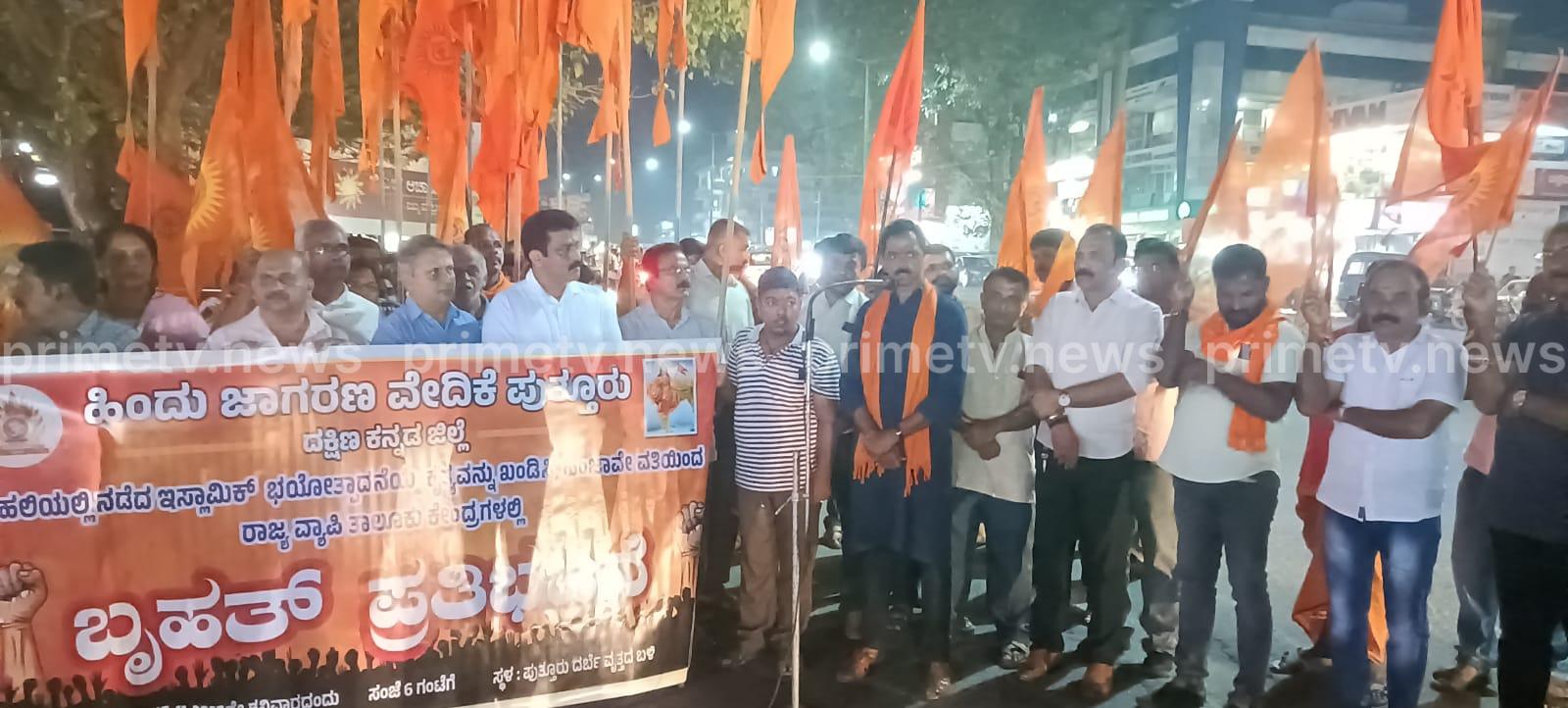 ವಿಧಾನಪರಿಷತ್ ಸದಸ್ಯ ಕಿಶೋರ್ ಕುಮಾರ್ ಪುತ್ತೂರು,ಹಿಂಜಾವೇ ಜಿಲ್ಲಾ ಕಾರ್ಯಕಾರಿಣಿ ಸದಸ್ಯ ಅನೂಪ್ ಆಳ್ವ ಎಣ್ಮೂರು,ಹಿಂದು ಜಾಗರಣ ವೇದಿಕೆ ಜಿಲ್ಲಾ ಸಂಪರ್ಕ ಪ್ರಮುಖ್ ದಯಾನಂದ ಅಂಬುಲ, ಹಿಂದು ಜಾಗರಣ ವೇದಿಕೆಯ ಜಿಲ್ಲಾ ಸಹ ಸಂಯೋಜಕ್ ದಿನೇಶ್ ಪಂಜಿಗ, ಹಿಂದು ಜಾಗರಣ ವೇದಿಕೆಯ ಜಿಲ್ಲಾ ಸಂಯೋಜಕ್ ಮೋಹನ್‍ದಾಸ್ ಕಾಣಿಯೂರು, ಜಿಲ್ಲಾ ಸಹ ಸಂಯೋಜಕ ಭರತ್ ಈಶ್ವರಮಂಗಲ, ಜಿಲ್ಲಾ ಕಾರ್ಯಕಾರಿಣಿ ಸದಸ್ಯರಾದ ಶಿವಪ್ರಸಾದ್ ಶಾಂತಿಗೋಡು, ಪ್ರಸಾದ್ ಪುರುಷರಕಟ್ಟೆ, ತಾಲೂಕು ಸಂಯೋಜಕ ಕೀರ್ತನ್ ಸವಣೂರು, ಸಹ ಸಂಯೋಜಕ ಸುಭಾಶ್ ಮುಕ್ವೆ, ಸಂತೋಷ್ ಮುಂಡೂರು, ಸಂದೀಪ್ ಮುಂಡೂರು, ನಗರ ಸಂಯೋಜಕ ಮನೀಶ್ ಬಿರ್ವ, ಸಹ ಸಂಯೋಜಕ ಕಿರಣ್ ಬೆದ್ರಾಳ, ತಾಲೂಕು ಕಾರ್ಯಕಾರಣಿ ಸದಸ್ಯರಾದ ಶೇಖರ್ ಬನ್ನೂರು, ಕರಾವಳಿ ಅಭಿವೃದ್ಧಿ ಪ್ರಾಧಿಕಾರದ ಮಾಜಿ ಅಧ್ಯಕ್ಷ ಚನಿಲ ತಿಮ್ಮಪ್ಪ ಶೆಟ್ಟಿ, ಬಿಜೆಪಿ ನಗರ ಮಂಡಲದ ಅಧ್ಯಕ್ಷ ಶಿವಕುಮಾರ್ ಕಲ್ಲಿಮಾರ್, ಗ್ರಾಮಾಂತರ ಮಂಡಲದ ಅಧ್ಯಕ್ಷ ದಯಾನಂದ ಶೆಟ್ಟಿ ಉಜಿರೆಮಾರು, ಪ್ರಸನ್ನ ದರ್ಬೆ, ಉದ್ಯಮಿ ಸೀತಾರಾಮ ರೈ ಕೆದಂಬಾಡಿಗುತ್ತು, ವಿಶ್ವಹಿಂದು ಪರಿಷತ್ ಜಿಲ್ಲಾಧ್ಯಕ್ಷ ಡಾ. ಕೃಷ್ಣಪ್ರಸನ್ನ, ಶ್ರೀಧರ್ ತೆಂಕಿಲ, ಜಗದೀಶ್ ಬನ್ನೂರು, ಸಂಜಯ್, ಹರಿಪ್ರಸಾದ್, ಹರೀಶ್ ದೋಳ್ಪಾಡಿ, ಸತೀಶ್ ನಾೈಕ್ ಪರ್ಲಡ್ಕ, ಬಿಜೆಪ ಜಿಲ್ಲಾ ಪ್ರಶೀಕ್ಷಣ ಪ್ರಕೋಷ್ಠದ ಸಂಚಾಲಕ ಚಂದ್ರಶೇಖರ್ ರಾವ್ ಬಪ್ಪಳಿಗೆ, ಯುವ ಮೋಚಾ ಜಿಲ್ಲಾ ಕಾರ್ಯದರ್ಶಿ ವಿರೂಪಾಕ್ಷ ಮಚ್ಚಿಮಲೆ, ಲಕ್ಷ್ಮಣ ಬೆಳ್ಳಿಪ್ಪಾಡಿ, ವಸಂತಲಕ್ಷ್ಮೀ, ವಿಶ್ವನಾಥ ಗೌಡ ಬನ್ನೂರು, ಭಾಮಿ ಜಗದೀಶ್ ಶೆಣೈ, ಪ್ರಕಾಶ್ ಕೈಂದಾಡಿ, ರಾಧಾಕೃಷ್ಣ ನಂದಿಲ, ಕಿರಣ್ ಬಲ್ನಾಡು, ಮಾಜಿ ಪುರಸಭೆ ಅಧ್ಯಕ್ಷ ರಾಜೇಶ್ ಬನ್ನೂರು, ಸುರೇಶ್ಚಂದ್ರ ರೈ ಸಹಿತ ಹಲವಾರು ಮಂದಿ ಪ್ರತಿಭಟನೆಯಲ್ಲಿ ಭಾಗವಹಿಸಿದ್ದರು.