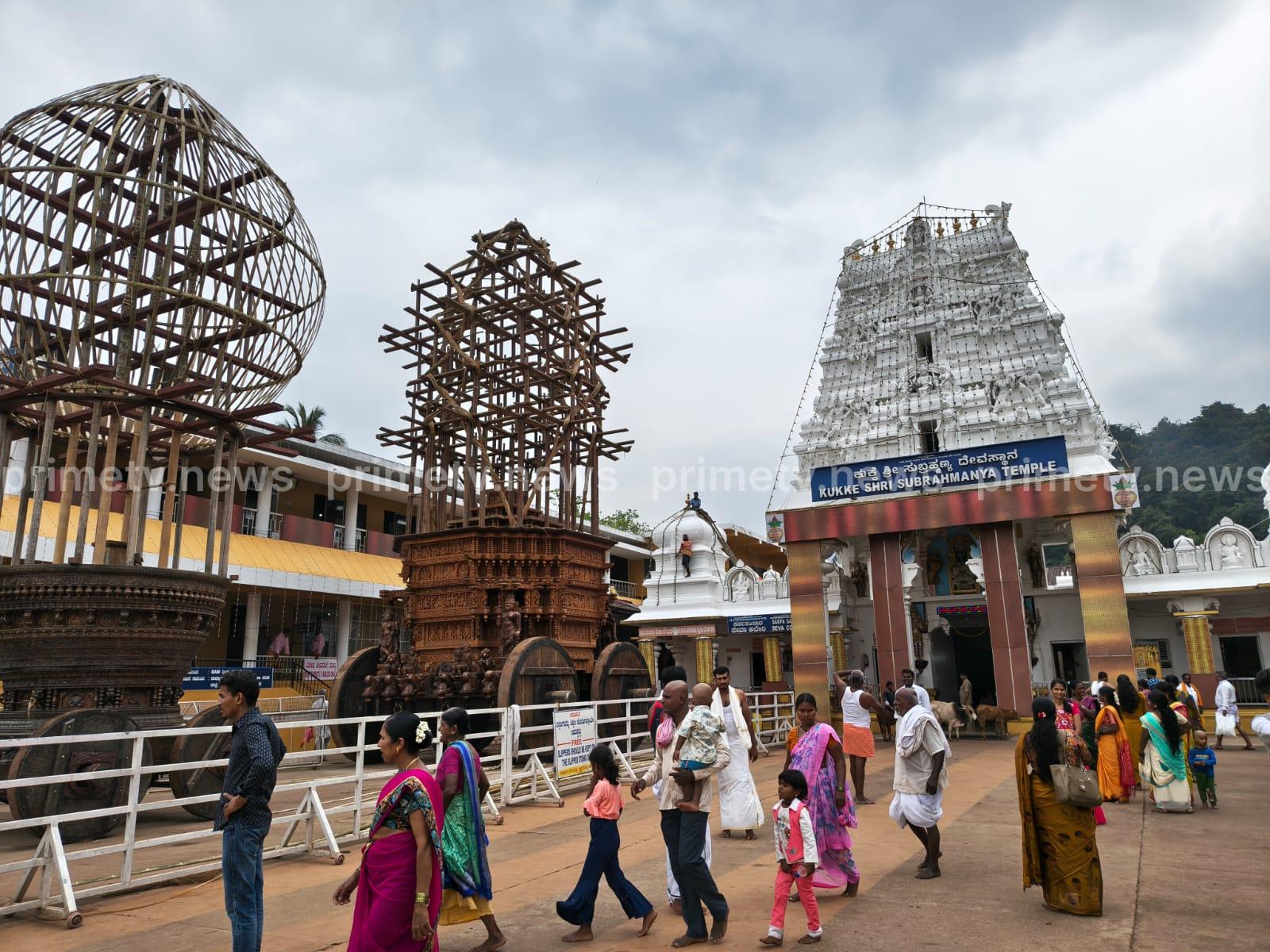 ಮಲೆ ಮಕ್ಕಳ ಶ್ರಮ : ಕಾರ್ತಿಕ ಹುಣ್ಣಿಮೆಯಂದು ಶ್ರೀ ದೇವರಿಗೆ ಸಹಸ್ರನಾಮರ್ಚನೆ ನಡೆದ ಬಳಿಕ ರಥಗಳಿಗೆ ಗೂಟ ಪೂಜೆ ನಡೆದು ನಂತರ ಶ್ರೀ ದೇವಳದ ಪುರೋಹಿತರು ಮಲೆ ಕುಡಿಯ ಜನಾಂಗದ ಗುರಿಕಾರ್ರಿಗೆ ರಥ ಕಟ್ಟಲು ಪ್ರಸಾದ ರೂಪದಲ್ಲಿ ವೀಳ್ಯವನ್ನು ನೀಡುತ್ತಾರೆ. ಹುಣ್ಣಿಮೆಯ ಮಾರನೇ ದಿನ ಸುಮಾರು 35ಕ್ಕೂ ಅಧಿಕ ರಥ ಕಟ್ಟಲಿರುವ ಮೂಲ ನಿವಾಸಿ ಮಲೆಕುಡಿಯ ಜನಾಂಗದವರು,ಸದಸ್ಯರು ಕಾಡಿಗೆ ತೆರಳುತ್ತಾರೆ.ಅನೇಕ ತಂಡಗಳಾಗಿ ಕಾಡಿಗೆ ತೆರಳಿ ರಥ ಕಟ್ಟುವ ಬೆತ್ತ ಸಂಗ್ರಹಣೆ ಮಾಡಿ ಮರಳುತ್ತಾರೆ. ಯಾವುದೇ ಹಗ್ಗವನ್ನು ಬಳಸದೆ ಬರೀ ಬೆತ್ತವನ್ನು ಬಳಸಿ ವಿಶಿಷ್ಟವಾದ ಸುಂದರ ರಥವನ್ನು ಇಲ್ಲಿಯ ಮೂಲ ನಿವಾಸಿಗಳು ನಿರ್ಮಿಸುತ್ತಾರೆ. ಇವುಗಳನ್ನು ಬೆತ್ತದಿಂದಲೇ ಎಳೆಯುವುದು ಮತ್ತೊಂದು ವಿಶೇಷ. ಕುಕ್ಕೆ ಕ್ಷೇತ್ರದ ಜಾತ್ರೆಯಲ್ಲಿ ರಥಗಳು ಪ್ರಧಾನವಾಗಿವೆ. ಆದುದರಿಂದ ಸಾಲಂಕೃತ ರಥಗಳು ಜಾತ್ರೆಯ ಮೆರೆಗನ್ನ ಇಮ್ಮಡಿಗೊಳಿಸುತ್ತವೆ. ಇದುವರೆಗೆ ವಿಶೇಷ ರಥದ ಮನೆಯೊಳಗಿದ್ದ ಬ್ರಹ್ಮರಥ, ಹಾಗೂ ಕೊಟ್ಟಿಗೆಯೊಳಗಿದ್ದ ಚಿಕ್ಕ ರಥ, ಚಂದ್ರಮಂಡಲ ರಥ, ಹೂವಿನ ತೇರುಗಳು,ಹೊರಬಂದಿವೆ. ಅಲ್ಲದೆ ಈತನಕ ದೇವಳದ ಉಗ್ರಾಣದಲ್ಲಿದ್ದ ರಥಗಳ ಶಿಖರಗಳನ್ನು ಹೊರಕ್ಕೆ ತರಲಾಗಿದೆ.