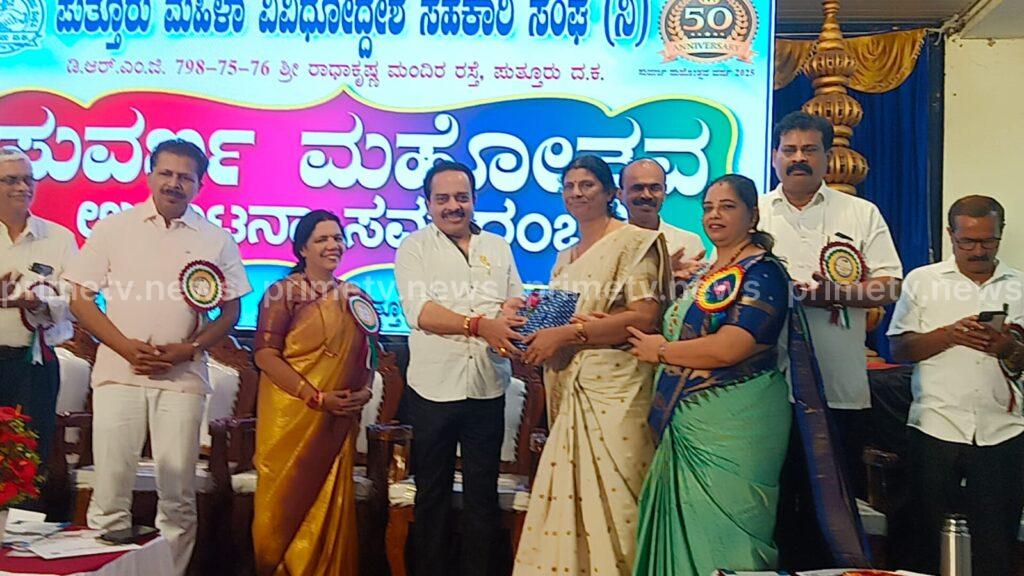 ಪುತ್ತೂರು ಕೋ-ಆಪರೇಟಿವ್ ಟೌನ್ ಬ್ಯಾಂಕ್ ಸಭಾಂಗಣದಲ್ಲಿ ಬುಧವಾರ ಪುತ್ತೂರು ಮಹಿಳಾ ವಿವಿಧೋದ್ದೇಶ ಸಹಕಾರಿ ಸಂಘದ ಸುವರ್ಣ ಮಹೋತ್ಸವ ಸಂಭ್ರಮವನ್ನು ಉದ್ಘಾಟಿಸಿ ಅವರು ಮಾತನಾಡಿದರು. ಐವತ್ತು ವರ್ಷಗಳ ಹಿಂದೆ ಹಿರಿಯರು ಹಾಕಿದ ಅಡಿಪಾಯವನ್ನು ಹಾಲಿ ಬಲಿಷ್ಠ ಅಧ್ಯಕ್ಷೆ ಗೌರಿ ಬನ್ನೂರು ಅವರು ಯಶಸ್ವಿಯಾಗಿ ಮುಂದುವರಿಸುತ್ತಿದ್ದು, ಈ ಸಂಘ ನೂರಾರು ಸಂಕಷ್ಟದಲ್ಲಿರುವ ಮಹಿಳೆಯರಿಗೆ ನೆರವಾಗಿದೆ. ಮುಂದಿನ ದಿನಗಳಲ್ಲಿ ಗ್ರಾಮಗಳಲ್ಲೂ ಶಾಖೆಗಳನ್ನು ತೆರೆಯುವ ಮೂಲಕ ಈ ಯಶಸ್ಸು ಮತ್ತಷ್ಟು ವಿಸ್ತರಿಸಬೇಕು ಎಂದು ಅವರು ಆಶಿಸಿದರು.
