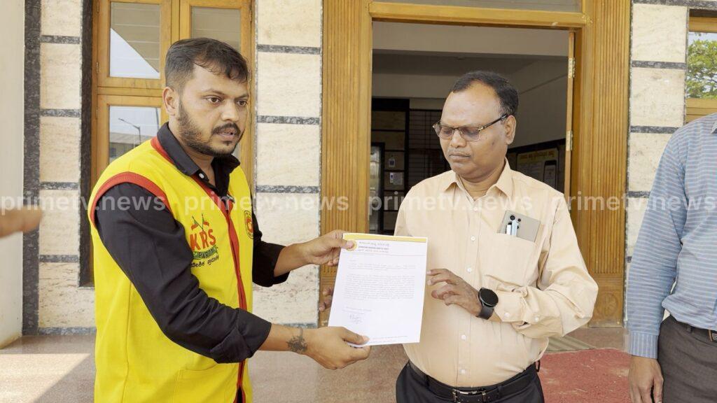 ಪ್ರತಿಭಟನೆಯ ಬಳಿಕ ಕೆಆರ್ಎಸ್ ಪಕ್ಷದ ಮುಖಂಡರು ತಹಶೀಲ್ದಾರರಿಗೆ ಮನವಿ ಸಲ್ಲಿಸಿದರು.