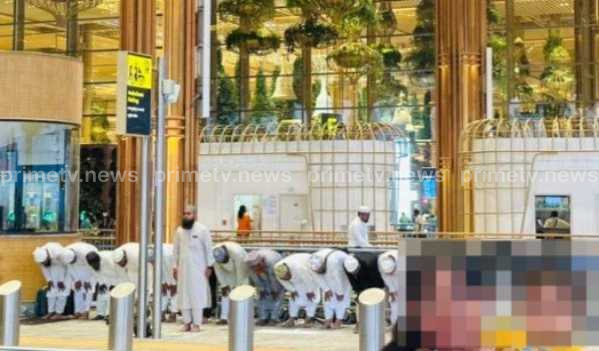 ಏರ್ಪೋರ್ಟ್ ಗೆ ಮೆಕ್ಕಾಗೆ ತೆರಳುತ್ತಿದ್ದವರನ್ನು ಬಿಳ್ಕೊಡಲು ಸುಮಾರು ಹತ್ತಕ್ಕೂ ಹೆಚ್ಚು ಮಂದಿ ಆಗಮಿಸಿದ್ದರು. ಅವರನ್ನು ಕಳುಹಿಸಿ ವಾಪಸ್ ಬರುವ ವೇಳೆ ಟರ್ಮಿನಲ್ 2 ರಲ್ಲಿ ಸಾರ್ವಜನಿಕವಾಗಿ ನಮಾಜ್ ಮಾಡಿದ್ದಾರೆ.