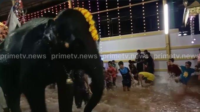 ಭಕ್ತರ ಸಂಭ್ರಮ ಮತ್ತು ಆನೆಯ ಜಲಕ್ರೀಡೆ