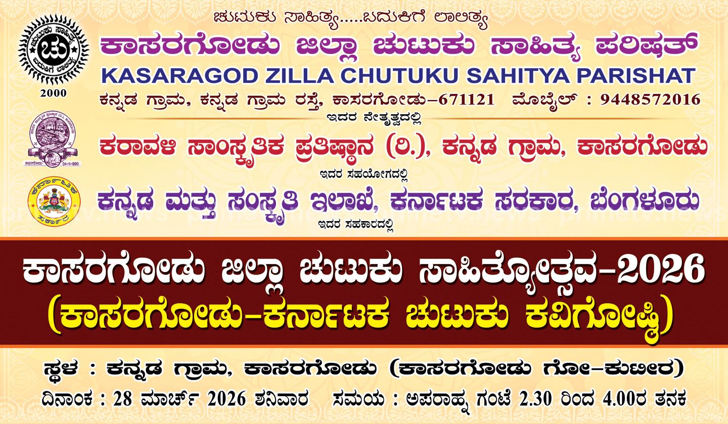 ಕಾಸರಗೋಡು ಜಿಲ್ಲಾ ಚುಟುಕು ಸಾಹಿತ್ಯ ಪರಿಷತ್ ಇದರ ಆಶ್ರಯದಲ್ಲಿ ಕರಾವಳಿ ಸಾಂಸ್ಕೃತಿಕ ಪ್ರತಿಷ್ಠಾನ (ರಿ. ),ಕನ್ನಡ ಗ್ರಾಮ, ಕಾಸರಗೋಡು ಇದರ ಸಹಯೋಗದಲ್ಲಿ ಕರ್ನಾಟಕ ಸರಕಾರ,ಕನ್ನಡ ಮತ್ತು ಸಂಸ್ಕೃತಿ ಇಲಾಖೆ, ಬೆಂಗಳೂರು ಇದರ ಸಹಕಾರದಲ್ಲಿ ಕಾಸರಗೋಡು ಮೀಪುಗುರಿ ಪಾರೆಕಟ್ಟೆಯ ಕನ್ನಡ ಗ್ರಾಮದ ಕಾಸರಗೋಡು ಗೋ – ಕುಟೀರದಲ್ಲಿ 2026 ಮಾರ್ಚ್ 28 ಶನಿವಾರದಂದು ಅಪರಾಹ್ನ ಗಂಟೆ 2.30 ರಿಂದ 4.00 ರ ತನಕ ಕಾಸರಗೋಡು ಜಿಲ್ಲಾ ಚುಟುಕು ಸಾಹಿತ್ಯೋತ್ಸವ, ಬಹುಭಾಷಾ ಕವಿ ಗೋಷ್ಠಿ, ಚುಟುಕು ಕವಿಗೋಷ್ಠಿ ,ಮಕ್ಕಳ ಕವಿಗೋಷ್ಠಿಯನ್ನು ಹಮ್ಮಿಕೊಳ್ಳಲಾಗಿದೆ.