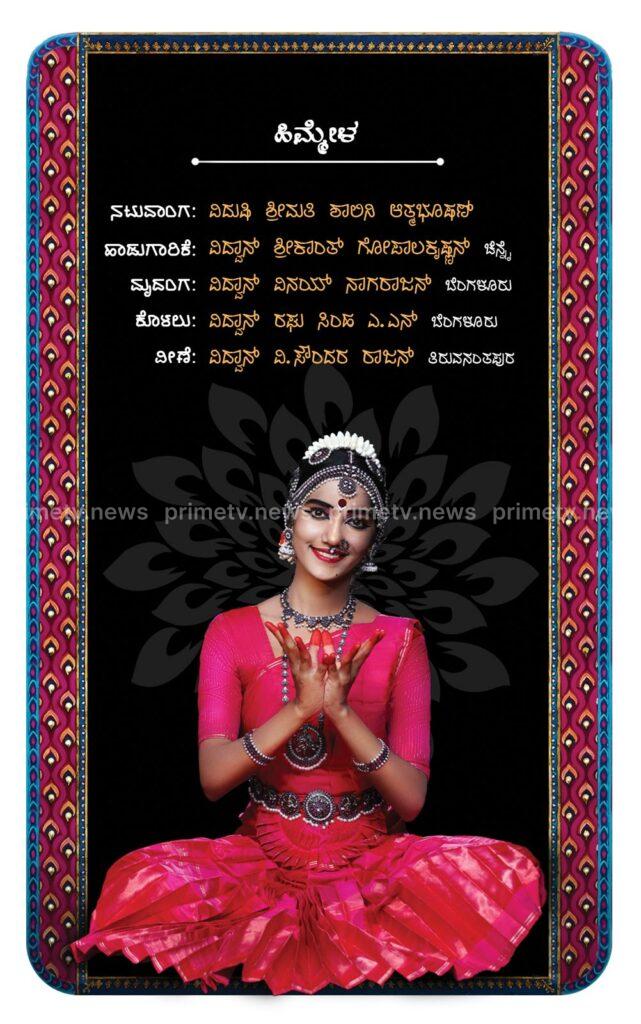 ಕಾರ್ಯಕ್ರಮದ ಹಿಮ್ಮೇಳದಲ್ಲಿ ನಟುವಾಂಗ ವಿದುಷಿ ಶಾಲಿನಿ ಆತ್ಮಭೂಷಣ್‌, ಗಾಯನದಲ್ಲಿ ವಿದ್ವಾನ್ ಶ್ರೀಕಾಂತ್ ಗೋಪಾಲಕೃಷ್ಣನ್ (ಚೆನ್ನೈ), ಮೃದಂಗದಲ್ಲಿ ವಿದ್ವಾನ್ ವಿನಯ್ ನಾಗರಾಜನ್ (ಬೆಂಗಳೂರು), ಕೊಳಲಿನಲ್ಲಿ ವಿದ್ವಾನ್ ರಘು ಸಿಂಹ ಎ.ಎನ್. (ಬೆಂಗಳೂರು) ಹಾಗೂ ವೀಣೆಯಲ್ಲಿ ವಿದ್ವಾನ್ ವಿ. ಸುಂದರ ರಾಜನ್ (ತಿರುವನಂತಪುರ) ಸಾಥ್ ನೀಡಲಿದ್ದಾರೆ.