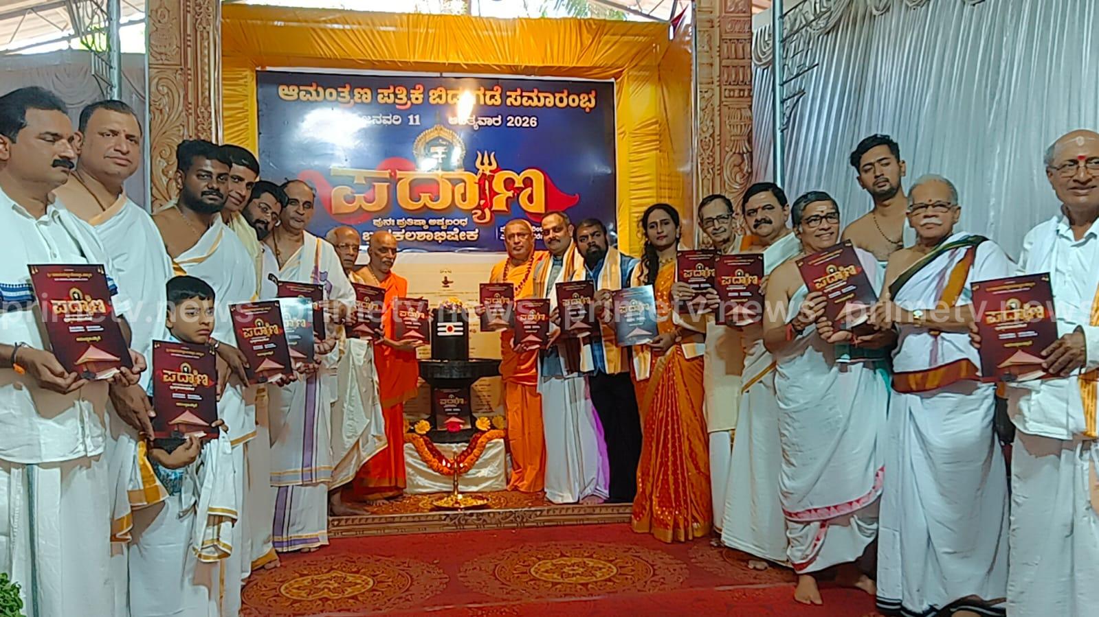 ಪುತ್ತೂರು: ಬಂಟ್ವಾಳ ತಾಲೂಕಿನ ಪದ್ಯಾಣ ಶ್ರೀ ಮಹಾಲಿಂಗೇಶ್ವರ ದೇವಸ್ಥಾನದ ಪುನಃಪ್ರತಿಷ್ಠಾ ಅಷ್ಟಬಂಧ ಬ್ರಹ್ಮಕಲಶಾಭಿಷೇಕ ಕಾರ್ಯಕ್ರಮಗಳು ಮಾರ್ಚ್ 30ರಿಂದ ಏಪ್ರಿಲ್ 6ರವರೆಗೆ ನಡೆಯಲಿದ್ದು, ಇದಕ್ಕೆ ಸಂಬಂಧಿಸಿದಂತೆ ಸಂಪರ್ಕ ರಸ್ತೆ, ವಿವಿಧ ಸೌಕರ್ಯಗಳ ಕಾಮಗಾರಿಗೆ ಚಾಲನೆ ಹಾಗೂ ಆಮಂತ್ರಣ ಪತ್ರಿಕೆ ಬಿಡುಗಡೆ ಕಾರ್ಯಕ್ರಮ ಭಾನುವಾರ ಜ.11ರಂದು ಪದ್ಯಾಣ ದೇವಸ್ಥಾನದಲ್ಲಿ ನಡೆಯಿತು.