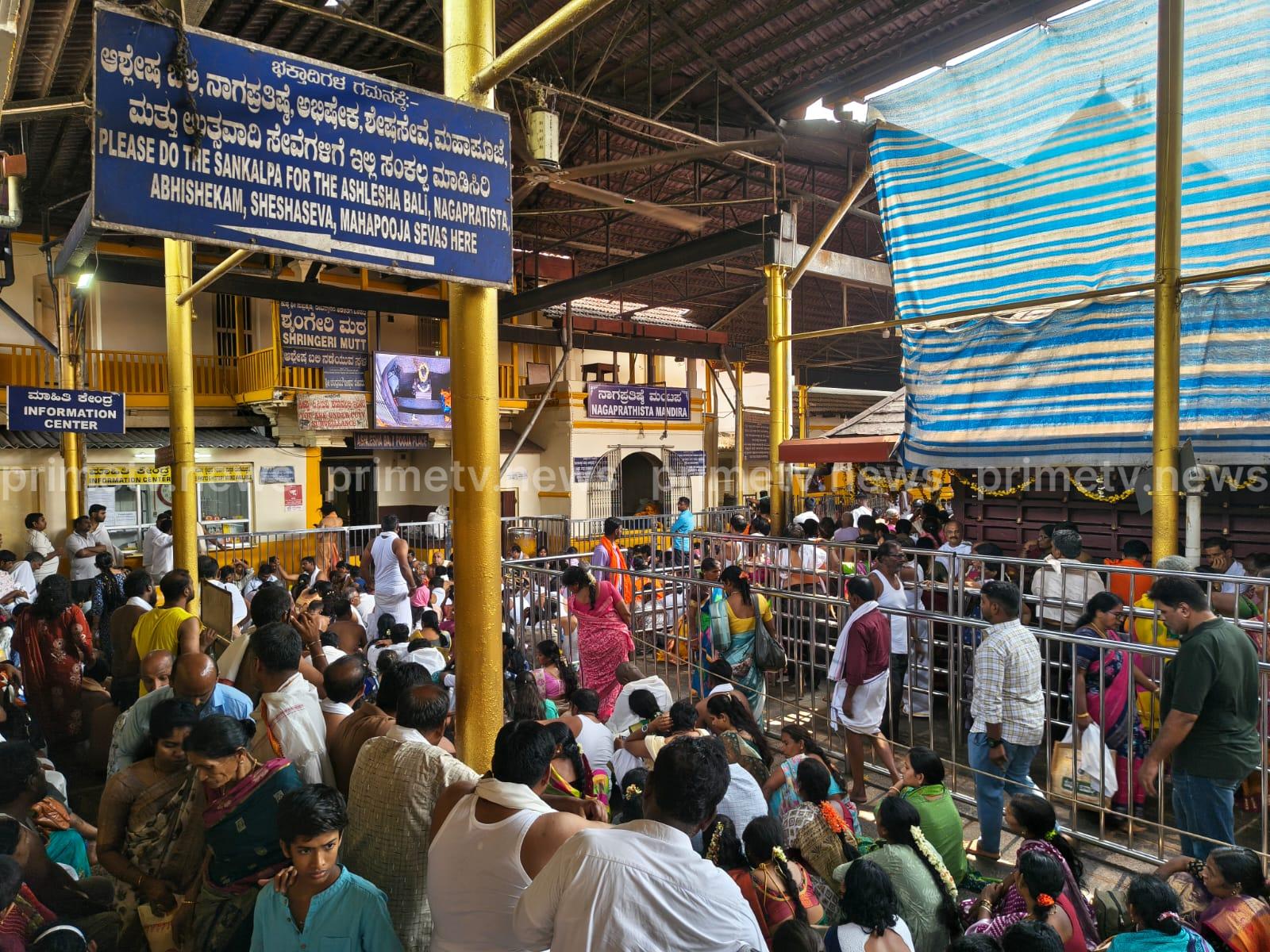 ಸುಬ್ರಹ್ಮಣ್ಯ ನ. 12 : ನಾಗರಾಧನೆಯ ಪುಣ್ಯಕ್ಷೇತ್ರ ಕುಕ್ಕೆ ಸುಬ್ರಹ್ಮಣ್ಯದಲ್ಲಿ ತಿಂಗಳಿಗೊಮ್ಮೆ ಬರುವ ಆಶ್ಲೇಷ ನಕ್ಷತ್ರವಾದ ಈ ದಿನ ಅಧಿಕ ಭಕ್ತರು ಬಂದು ಆಶ್ಲೇಷ ಬಲಿ,ಶೇಷ ಸೇವೆ, ಮಹಾಪೂಜೆ, ನಾಗ ಪ್ರತಿಷ್ಠೆ ಮುಂತಾದ ಸೇವೆಗಳನ್ನ ನಡೆಸಿರುವರು. ಬೆಳಗ್ಗೆ ಹೊತ್ತು ಮೂರು ಬ್ಯಾಚಿನಲ್ಲಿ ಆಶ್ಲೇಷ ಬಲಿ ಸೇವೆ ನಡೆಯುತ್ತಿದ್ದು ಮೂರು ಬ್ಯಾಚುಗಳಲ್ಲಿ ಕೂಡ ಅಧಿಕ ಸಂಖ್ಯೆಯ ಭಕ್ತಾದಿಗಳು ಸೇವೆ ಸಲ್ಲಿಸಿರುವರು ಹಾಗೆಯೇ ಮಧ್ಯಾಹ್ನದ ನಾಗ ಪ್ರತಿಷ್ಠ ಮಂಟಪದ ಎದುರು ಸ್ಥಳವಕಾಶ ಕಡಿಮೆ ಇದ್ದರೂ ಅಂಗಣ ಉದ್ದಕ್ಕೂ ಭಕ್ತರು ಕುಳಿತು ನಾಗ ಪ್ರತಿಷ್ಠೆ ಸೇವೆ ಸಲ್ಲಿಸಿರುವರು. ಇತ್ತ ಭೋಜನ ಪ್ರಸಾದಕ್ಕೂ ಭಕ್ತರ ಸರತಿ ಸಾಲು ಅಧಿಕವಾಗಿತ್ತು. ಶ್ರೀ ದೇವಳದ ಅಧಿಕಾರಿಗಳು ಸಿಬ್ಬಂದಿ ವರ್ಗದವರು ಸೆಕ್ಯೂರಿಟಿಯವರು ಭಕ್ತಾದಿಗಳ ಸುಗಮ ದರ್ಶನ ಹಾಗೂ ಪ್ರಸಾದ ಸ್ವೀಕಾರಕ್ಕಾಗಿ ವ್ಯವಸ್ಥೆಯನ್ನು ಮಾಡಿರುವರು. ವಾಹನ ಪಾರ್ಕಿಂಗ್ ಪ್ರದೇಶ ವಾಹನಗಳಿಂದ ತುಂಬಿತ್ತು.