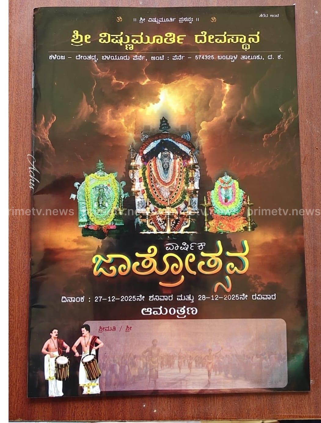 ಶ್ರೀ ವಿಷ್ಣುಮೂರ್ತಿ ದೇವಸ್ಥಾನ ಕಳೆಂಜದ ಸಭಾಭವನದಲ್ಲಿ ವಿಷ್ಣುಮೂರ್ತಿ ದೇವರ ಜಾತ್ರೋತ್ಸವದ ಆಮಂತ್ರಣ ಪತ್ರಿಕೆ ಬಿಡುಗಡೆ ಕಾರ್ಯಕ್ರಮ ನಡೆಯಿತು.