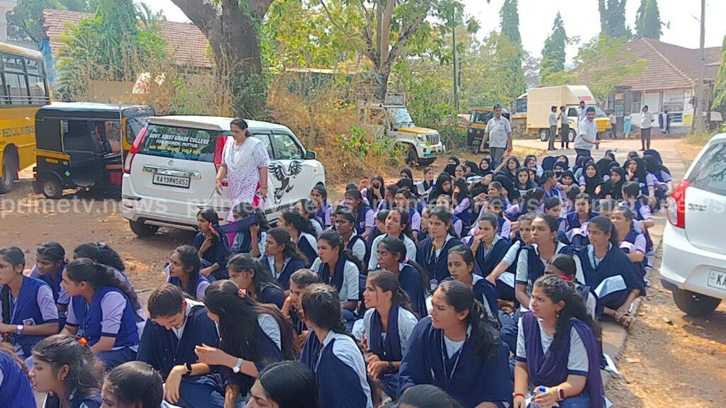 ಕಾಲೇಜು ಸಂಪರ್ಕ ರಸ್ತೆಯಲ್ಲಿ ನೂರಾರು ವಿದ್ಯಾರ್ಥಿನಿಯರು ಕುಳಿತು ಧರಣಿ ನಡೆಸಿ, ಧೂಳಿನಿಂದ ಉಸಿರಾಟದ ಸಮಸ್ಯೆ ಉಂಟಾಗುತ್ತಿದ್ದು ಕೆಲವರು ಆಸ್ಪತ್ರೆಗೆ ಸೇರಬೇಕಾದ ಪರಿಸ್ಥಿತಿ ಎದುರಾಗಿದೆ ಎಂದು ಆಕ್ರೋಶ ವ್ಯಕ್ತಪಡಿಸಿದರು. “ನ್ಯಾಯ ಸಿಗದಿದ್ದರೆ ರಸ್ತೆ ಬಿಡುವುದಿಲ್ಲ” ಎಂದು ಘೋಷಣೆ ಕೂಗಿದರು. ವಿದ್ಯಾರ್ಥಿನಿಯರಾದ ಚೈತನ್ಯ, ಭೂಮಿಕಾ, ಅರ್ಚನ ಮೊದಲಾದವರು ಸಮಸ್ಯೆಯನ್ನು ವಿವರಿಸಿದರು.