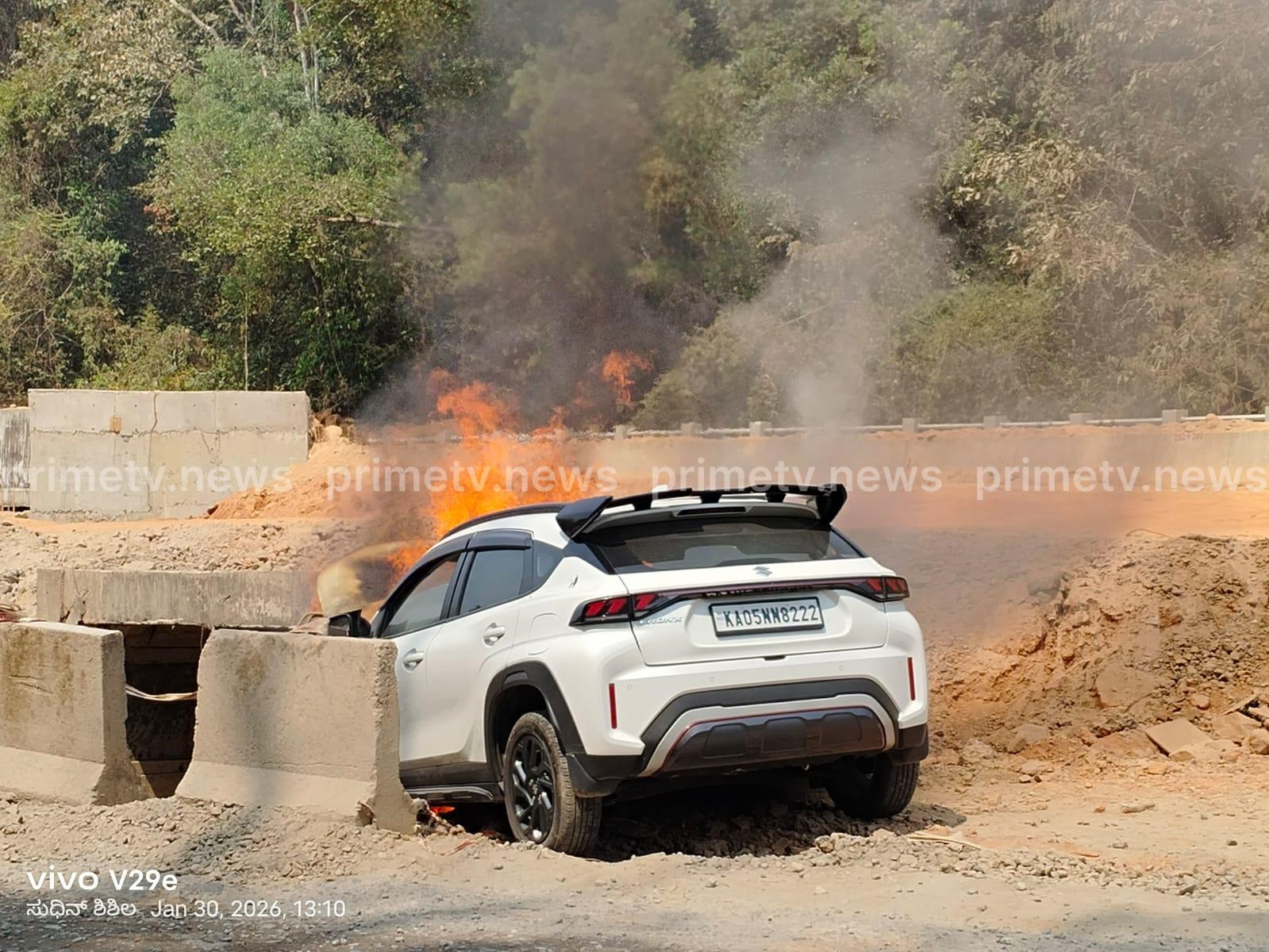 ಈ ಸಂದರ್ಭ ಕಾರಿನ ಎಂಜಿನ್ ಬಳಿ ಬೆಂಕಿ ಕಾಣಿಸಿಕೊಂಡಿದ್ದು, ಕಾರು ಹೊತ್ತಿ ಉರಿಯತೊಡಗಿತು. ಕಾರಿನಲ್ಲಿ ಒಬ್ಬ ಯುವಕ ಹಾಗೂ ಓರ್ವ ಯುವತಿಯಿದ್ದು ಅವರು ಸಣ್ಣಪುಟ್ಟ ಗಾಯಗಳೊಂದಿಗೆ ಅಪಾಯದಿಂದ ಪಾರಾಗಿದ್ದಾರೆ. ಕೊನೆಗೆ ಪುತ್ತೂರಿನಿಂದ ಅಗ್ನಿಶಾಮಕ ವಾಹನ ಬಂದು ಬೆಂಕಿಯನ್ನು ನಂದಿಸಿತ್ತಾದರೂ, ಅಷ್ಟರಲ್ಲಾಗಲೇ ಕಾರು ಸಂಪೂರ್ಣ ಉರಿದು ಹೋಗಿದ್ದು, ಇದರ ಮೆಟಲ್ ಬಾಡಿ ಹಾಗೂ ಕಬ್ಬಿಣದ ವಸ್ತುಗಳಷ್ಟೇ ಉಳಿದಿದೆ. ಕಾರಿನಲ್ಲಿದ್ದವರ ವಿವರ ಬೆಳಕಿಗೆ ಬಂದಿಲ್ಲ. ಈವರೆಗೆ ಈ ಬಗ್ಗೆ ಯಾವುದೇ ಪ್ರಕರಣ ದಾಖಲಾಗಿಲ್ಲ.