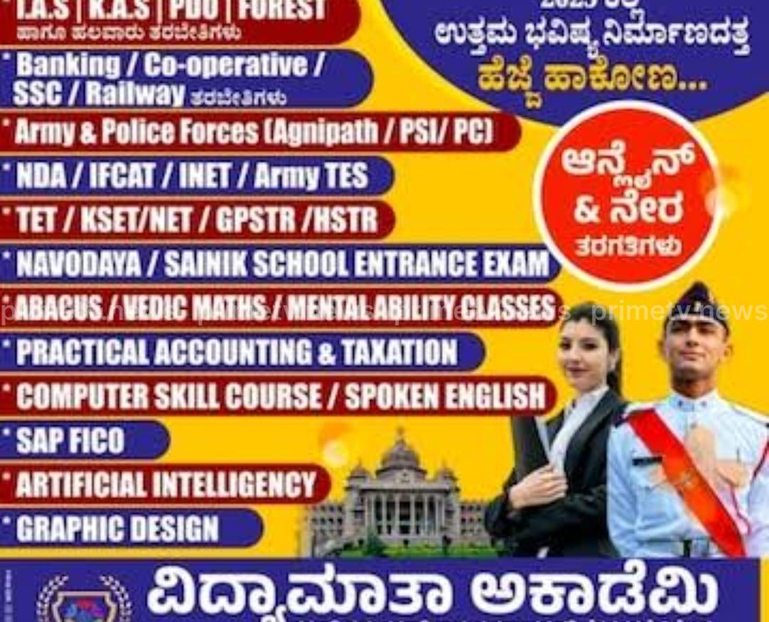 ವಿದ್ಯಾಮಾತಾ ಅಕಾಡೆಮಿಯಲ್ಲಿ ನಡೆಯುವ ಈ ಪೂರ್ವ ತಯಾರಿ ತರಬೇತಿಯ ಸದುಪಯೋಗ ಪಡೆದುಕೊಳ್ಳಲು ಆಸಕ್ತ ಹಾಗೂ ಅರ್ಹ ಅಭ್ಯರ್ಥಿಗಳು 9620468869 ಸಂಖ್ಯೆಯನ್ನು ಸಂಪರ್ಕಿಸಿ ದಾಖಲಾತಿ ಪಡೆಯಬಹುದು ಎಂದು ಸಂಸ್ಥೆ ತಿಳಿಸಿದೆ.